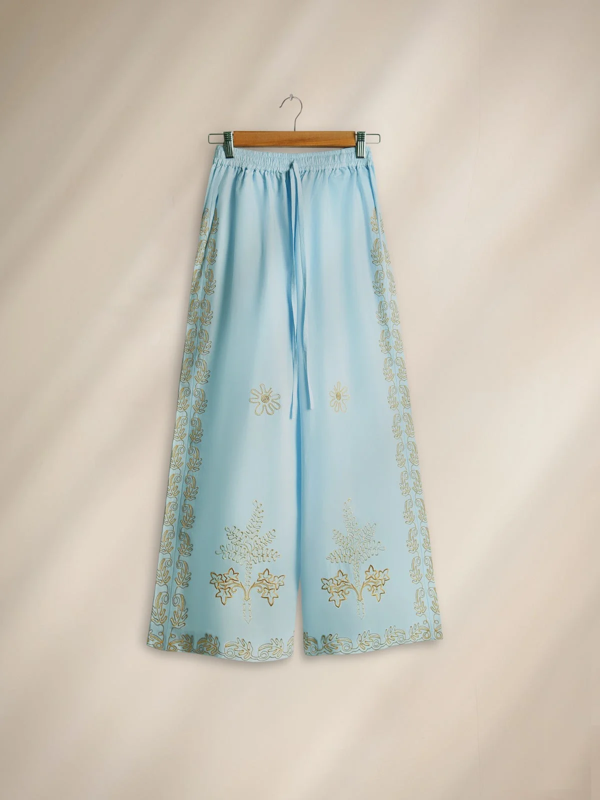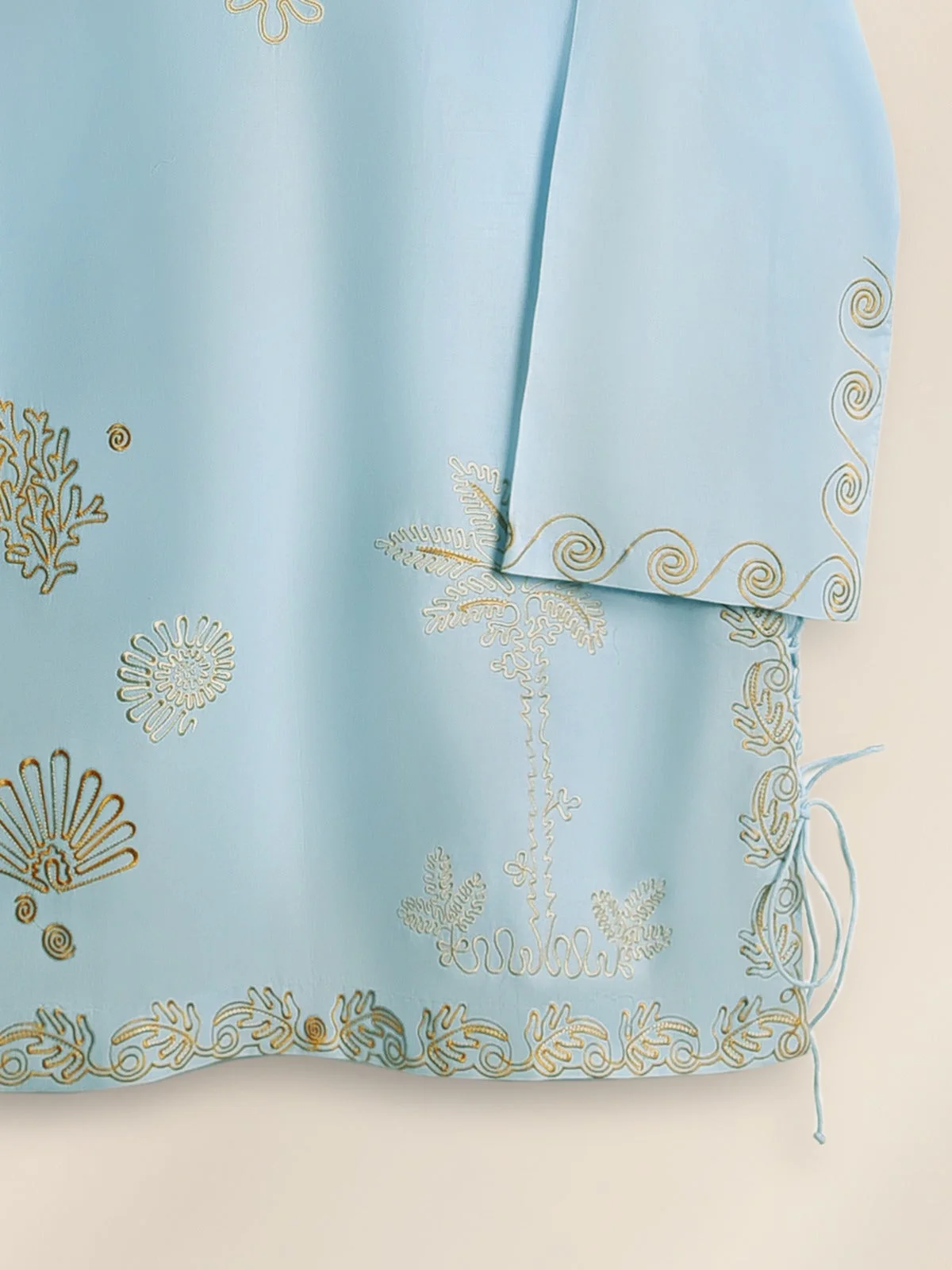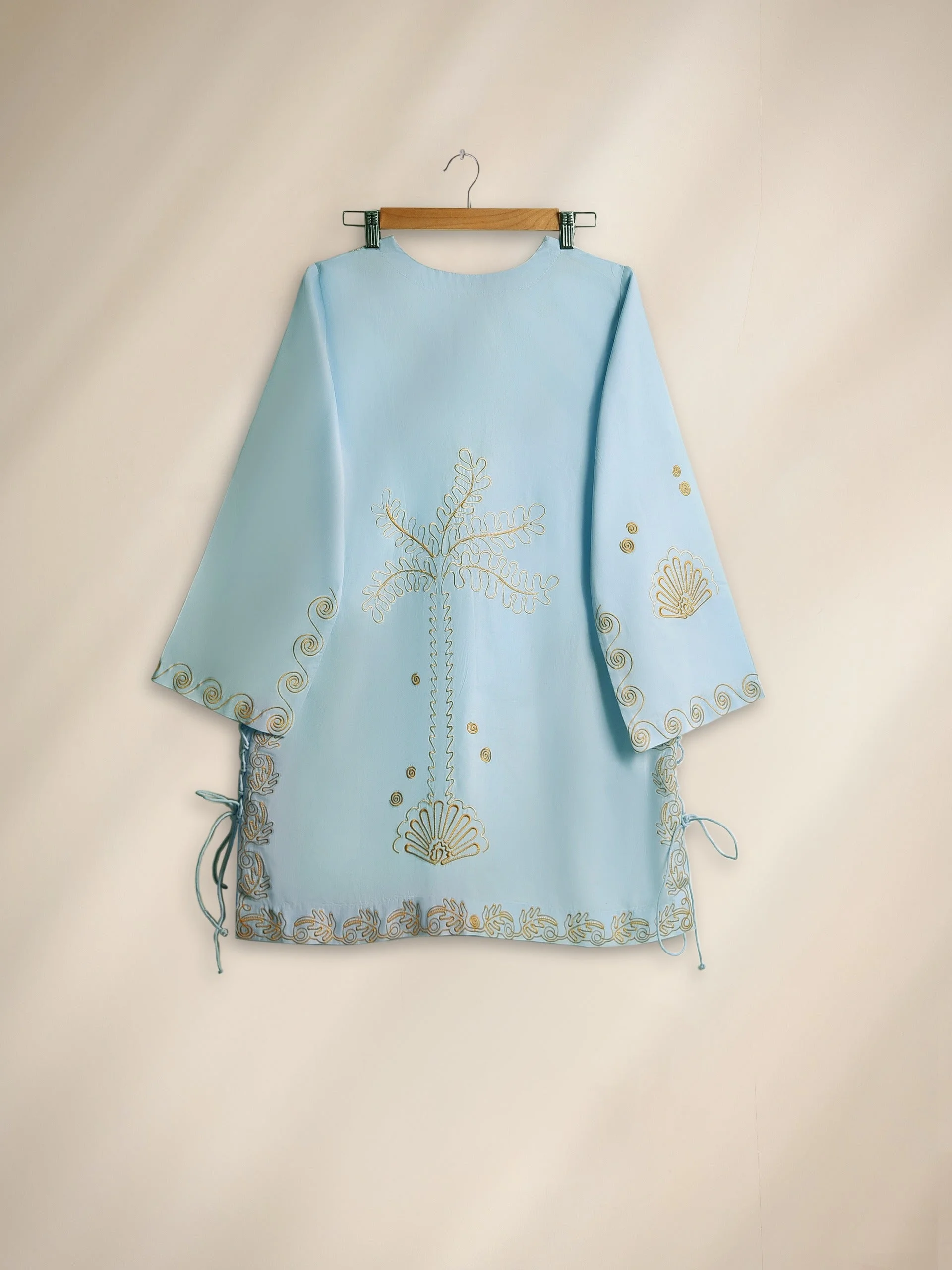 Sky blue kurta, tropical embroidered kurta, summer ethnic wear, floral kurta for women, scalloped kurta design