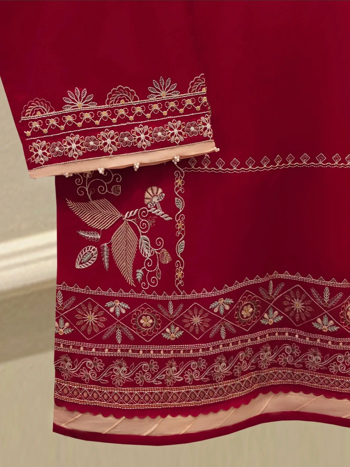 Elevate your summer wardrobe with this beautifully crafted maroon cambric shirt, Designed for timeless elegance, this piece blends breathable lawn fabric with traditional craftsmanship, perfect for festive occasions or casual sophistication. Pair it with shalwr for a complete look.