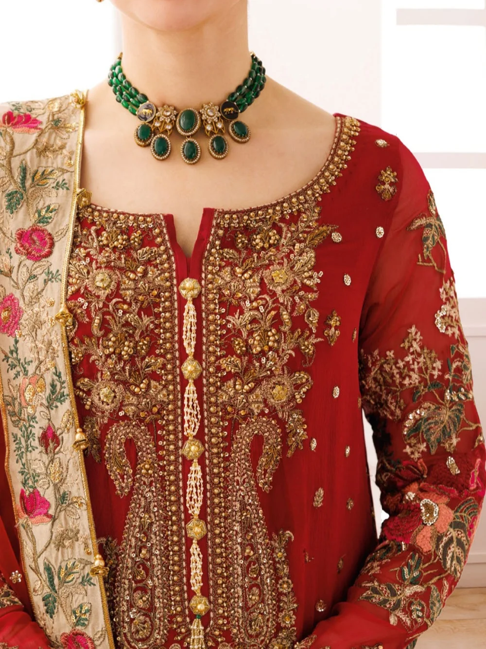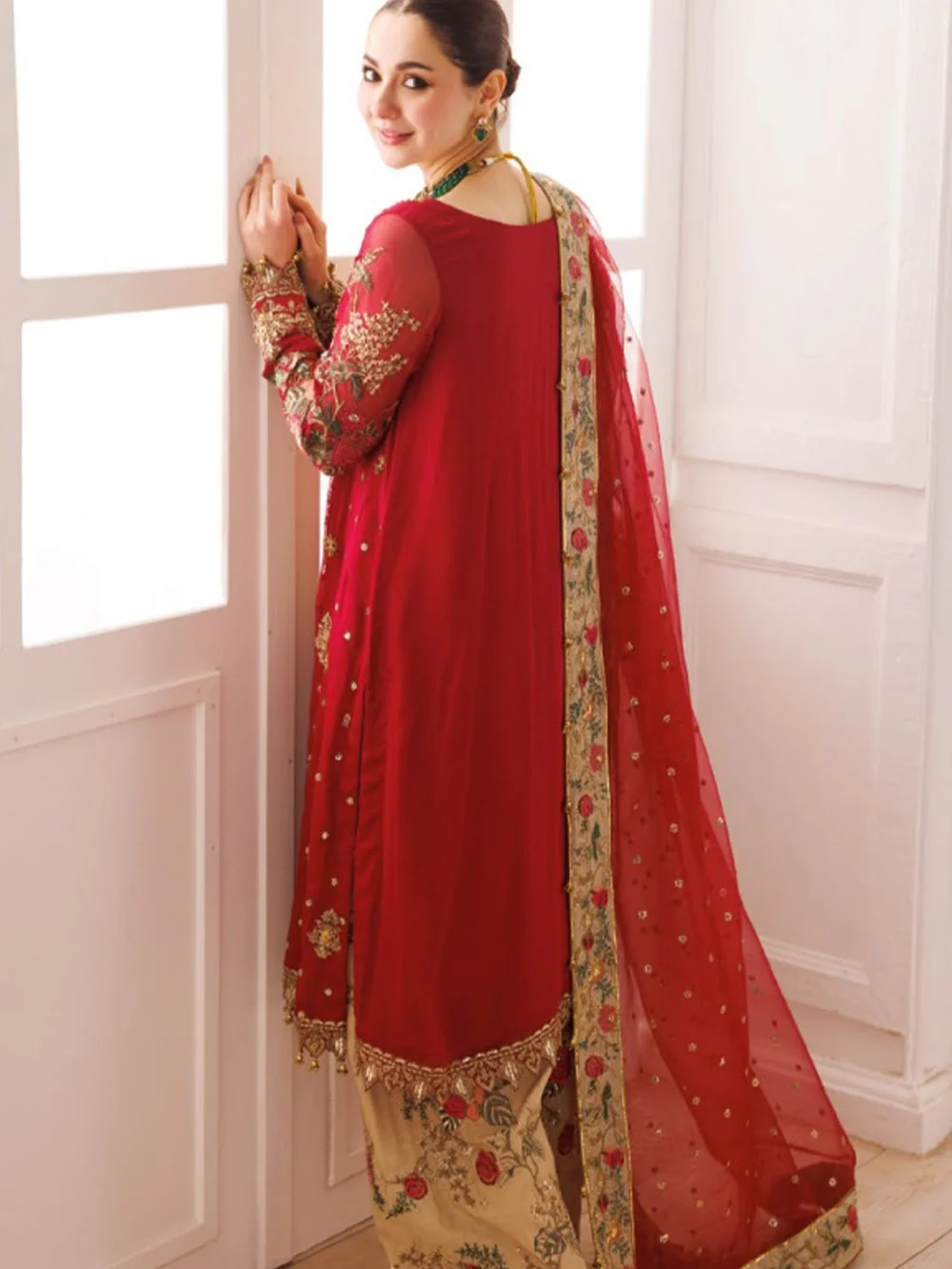 Embroidered & Adda Work Dyed Chiffon Front 1 Meter