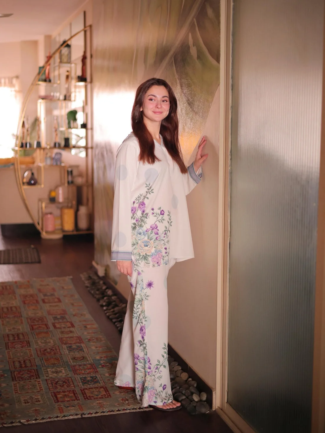 The radiant ensemble offers a unique and stylish look for any special occasion. This 2-piece suit features a chic contemporary short shirt with minimal floral prints. The matching trousers make it a trendy outfit to style at fun gatherings.