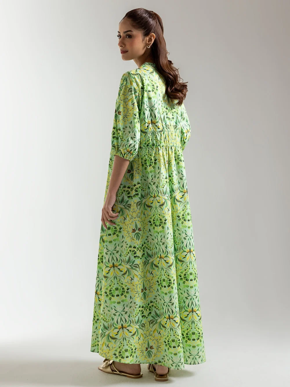 Drift into a world of fresh, vibrant style with this green floral maxi dress. A lively print in shades of lime, emerald, and hints of yellow flows across the fabric, evoking the charm of a flourishing garden. The flattering V-neckline leads into a cinched waist with delicate tassel ties, creating a beautifully defined silhouette. Perfect for sunny days and garden gatherings, this dress adds a touch of bohemian elegance to any occasion.