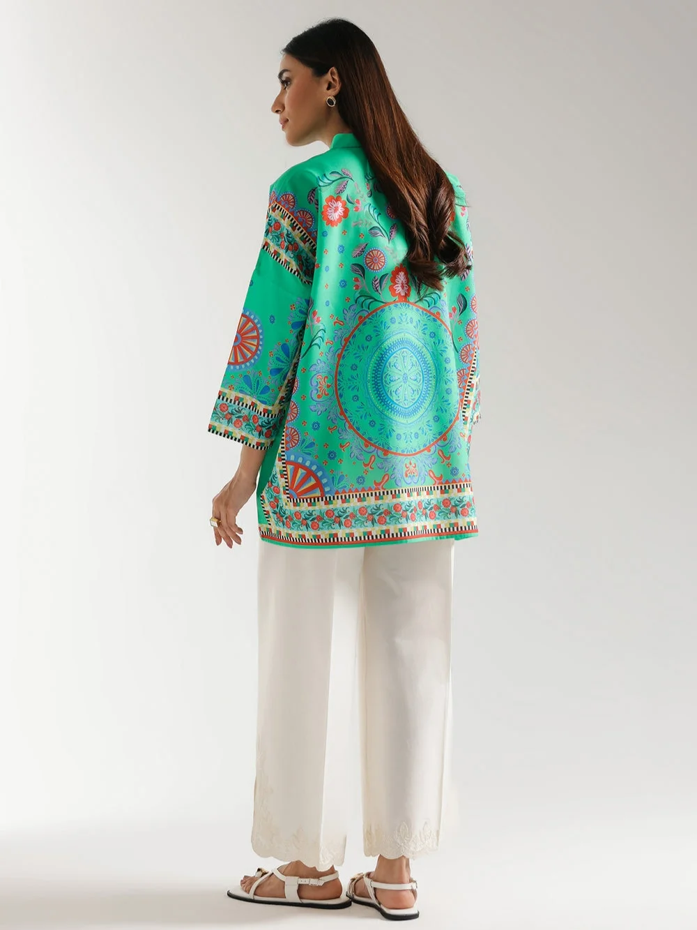 The fascinating kurti is the epitome of elegance, with its chic design and vibrant colors. Made with a fascinating light green shade, it features a contemporary, artistic composition that is perfect for fun events. Be the picture of grace this season with this stylish kurti.