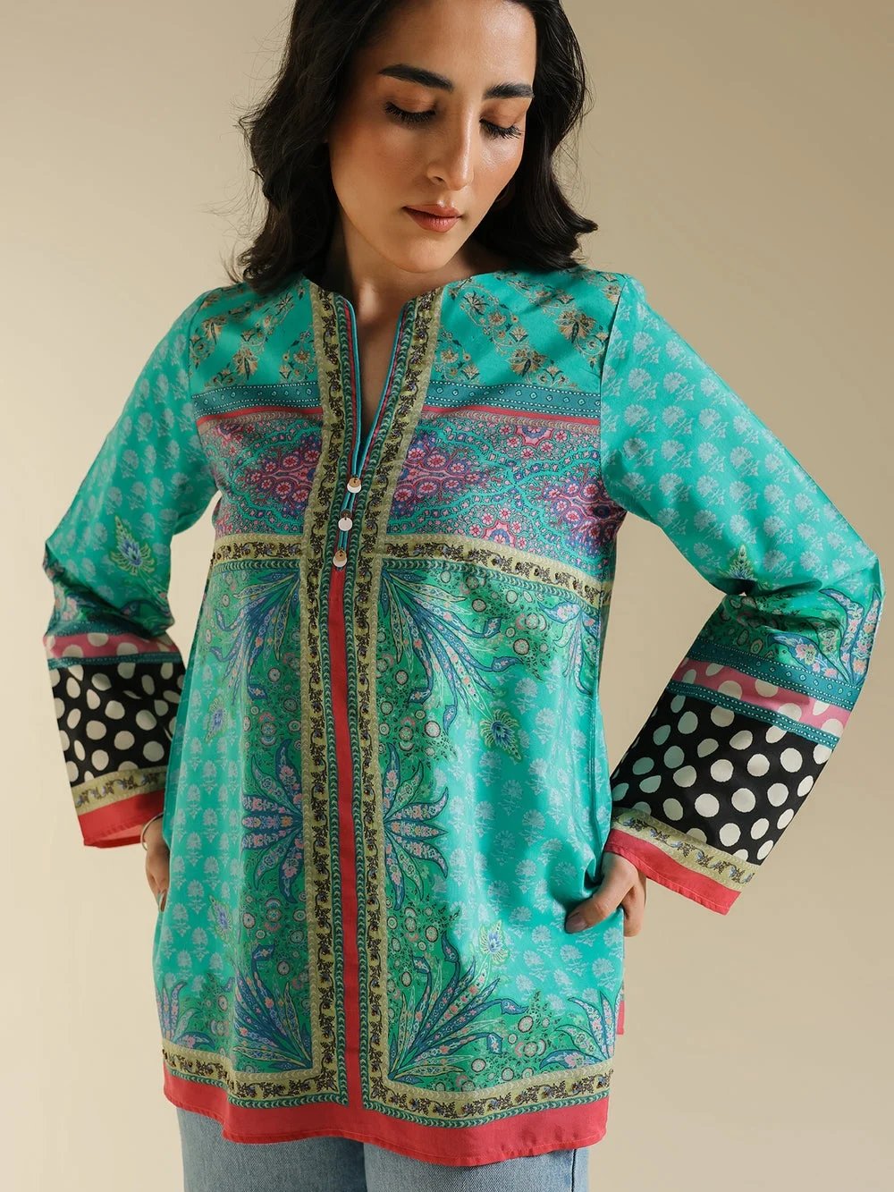 Be the epitome of grace and sophistication in this elegant kurti rendered in a vibrant sea green shade. Crafted in a contemporary silhouette beautifully enriched with aesthetically rich floral prints in mesmerizing colors, this classy kurti is a must have to style at fun occasions this happening season.