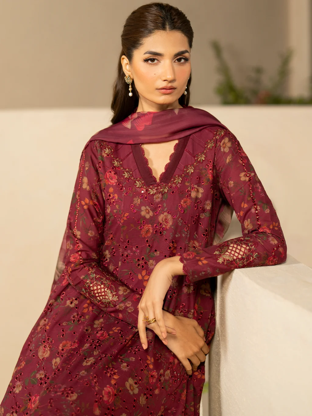 Sleeves: Borer Embroidered Printed Lawn
