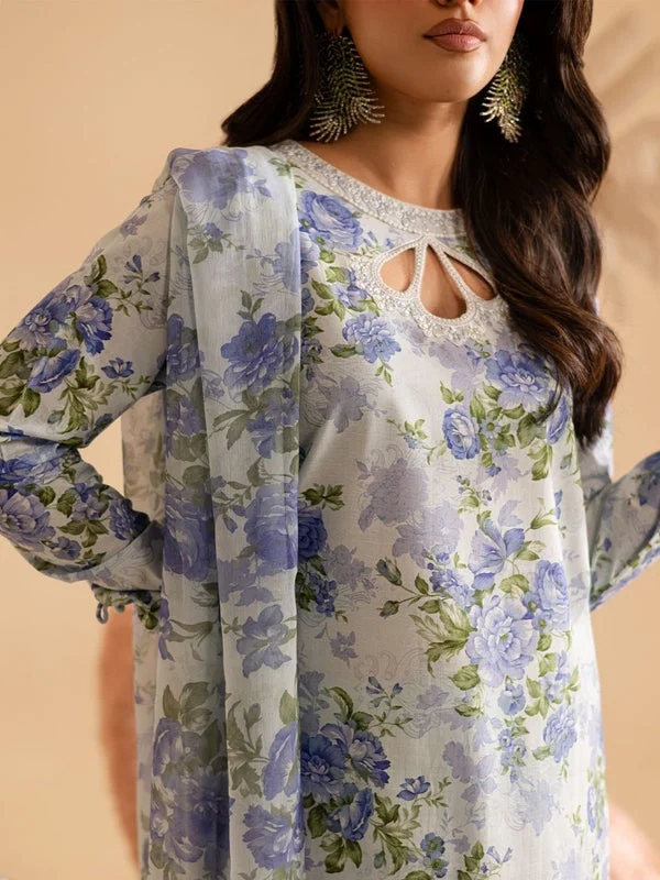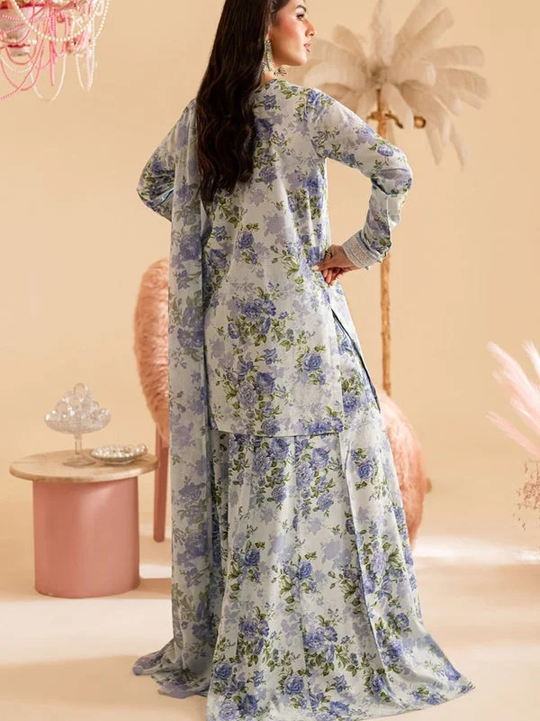 Embroidered And Printed Dorya Lawn Shirt With Printed Darya Cotton Gharara Pants And Printed Chiffon Dupatta