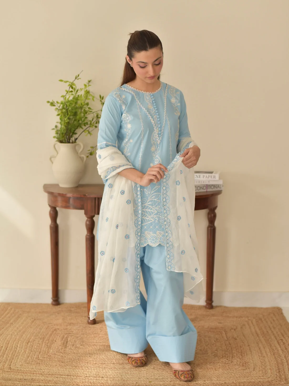 - Chiffon embroidered dupatta (optional)