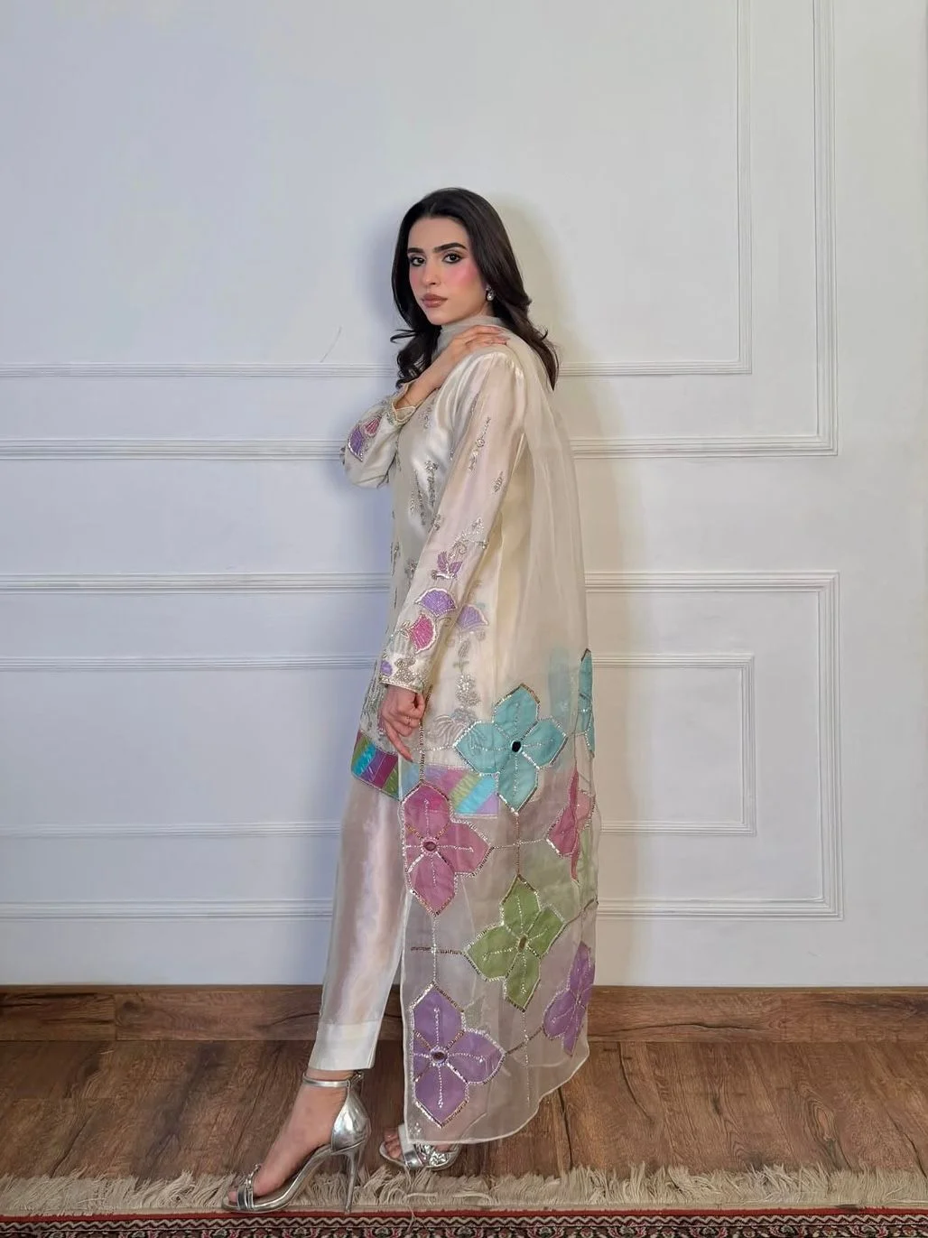 Embroidered Border (Front & Sleeves)(Hand Made)