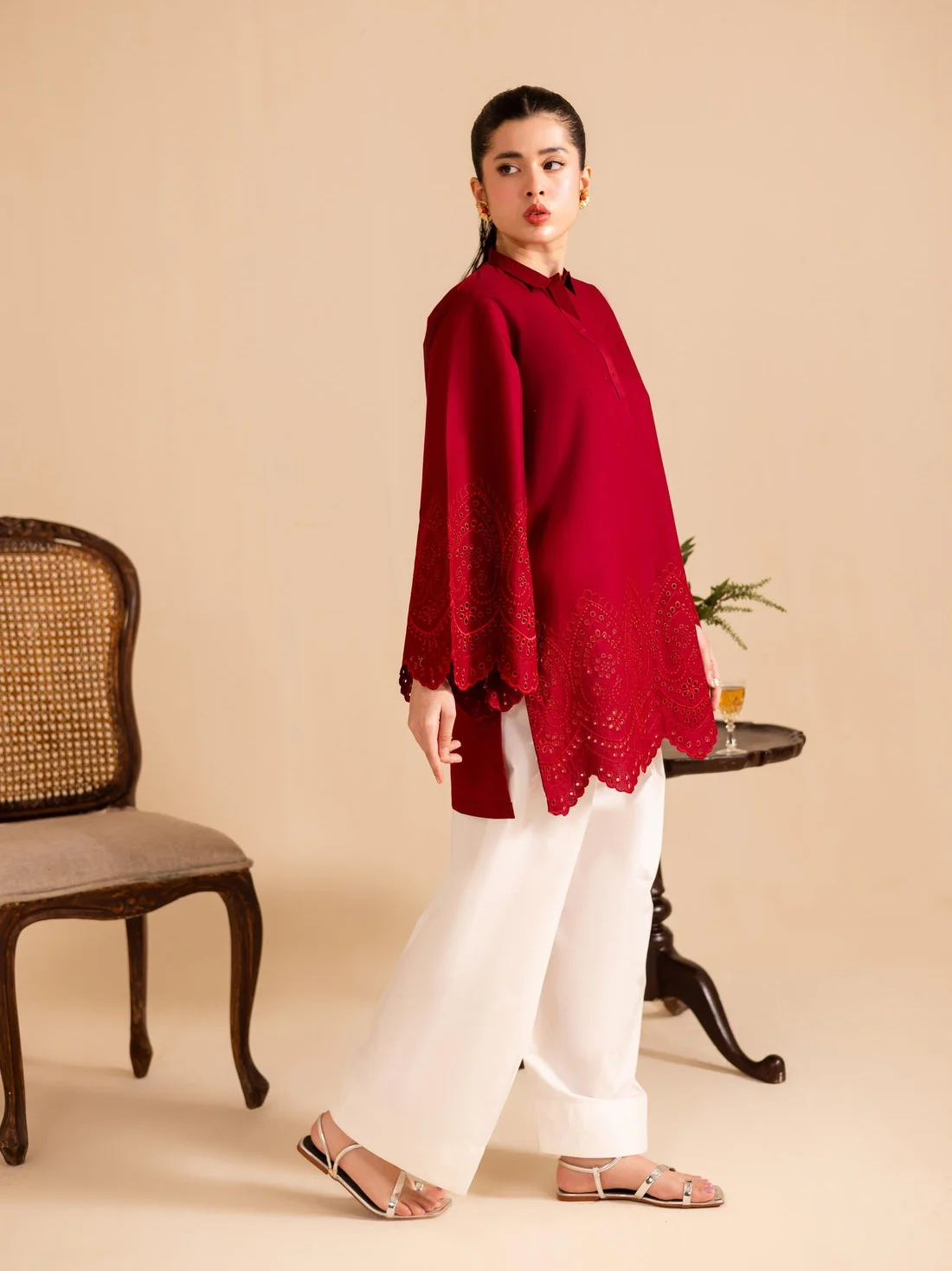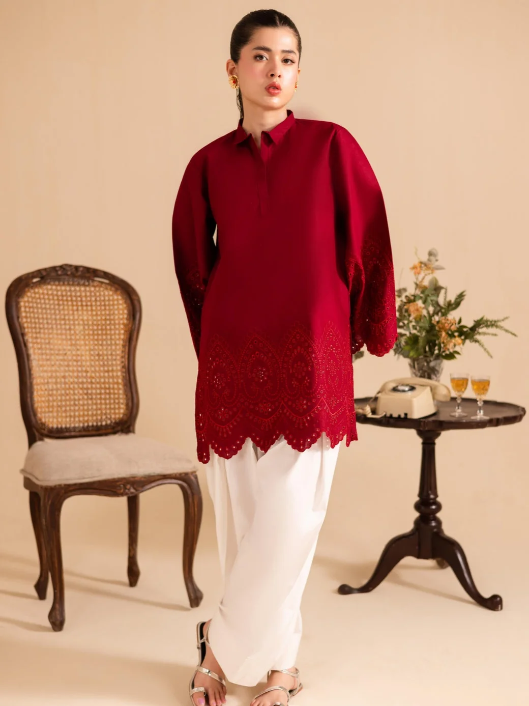 Description: Schiffli Embroidered Shirt and Farshi Shalwar for Summers.