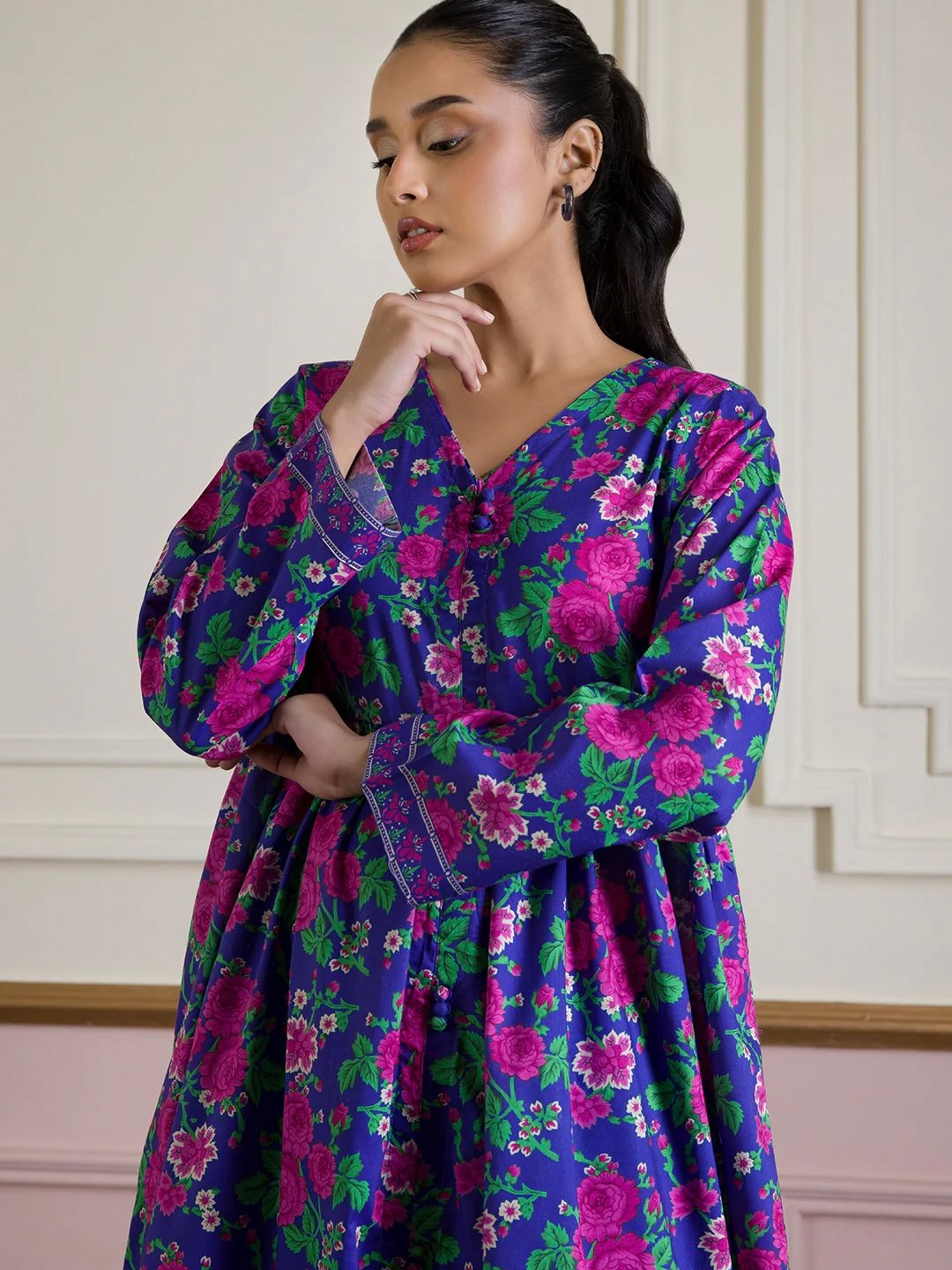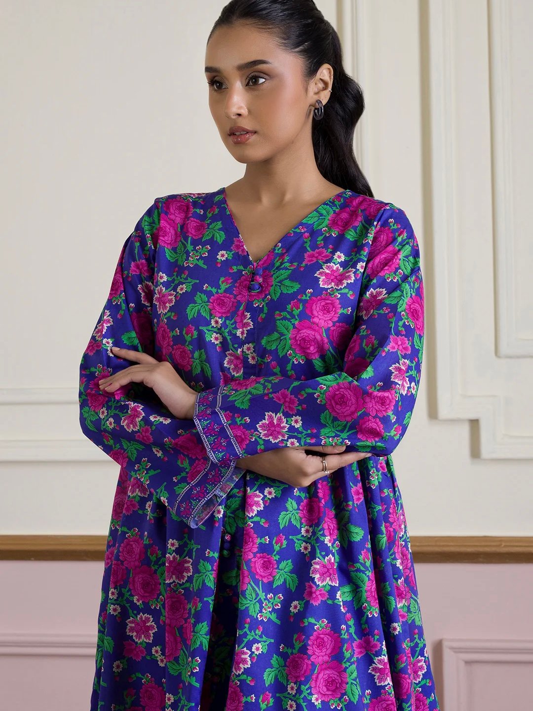 This elegant blue kurta is crafted from breathable lawn fabric, offering comfort and style for everyday wear. Designed for women, this pret collection piece features a printed pattern that adds subtle charm to your wardrobe. Perfect for casual outings or semi-formal occasions, it combines traditional design with modern ease.